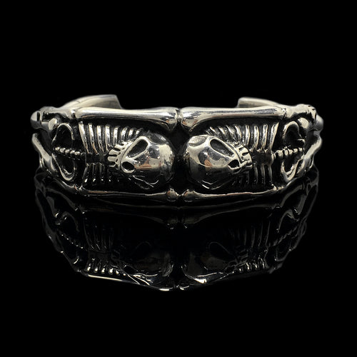 Retro Silver Double Skull Open Bracelet
