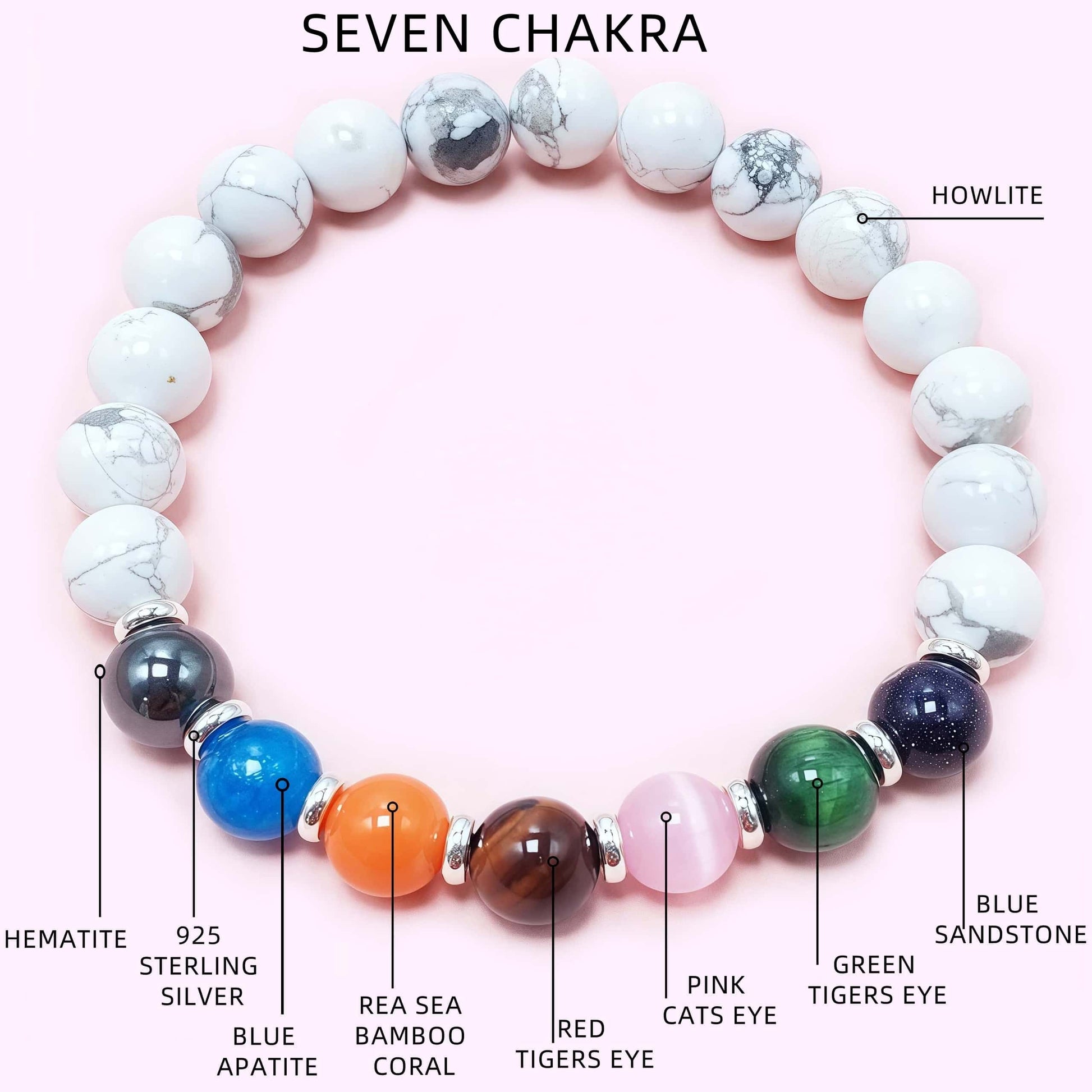 Natural Howlite Seven Chakra Crystal Bracelet