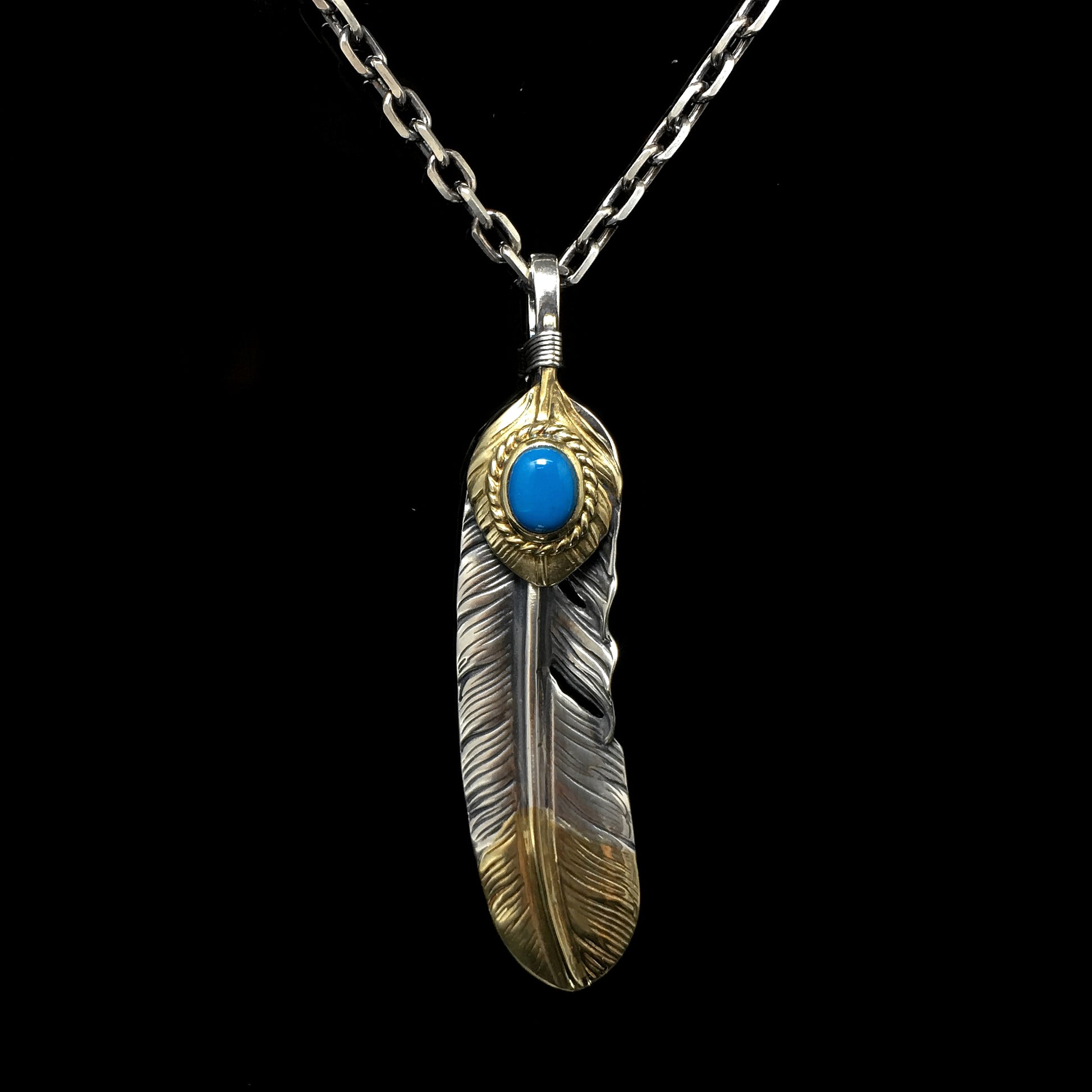 Left John Mayer Necklace Feather Leaf Retro 925 Silver Goro Takahashi Pendant with Brass Turquoise