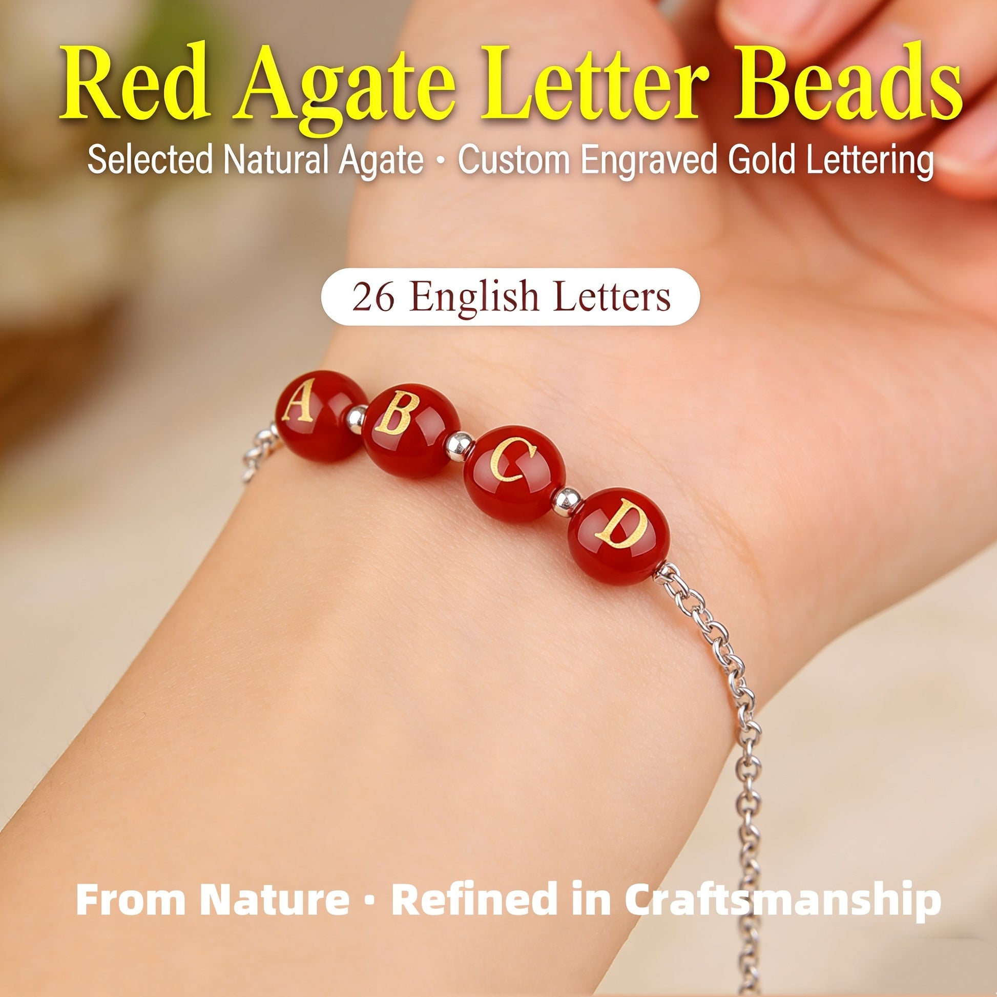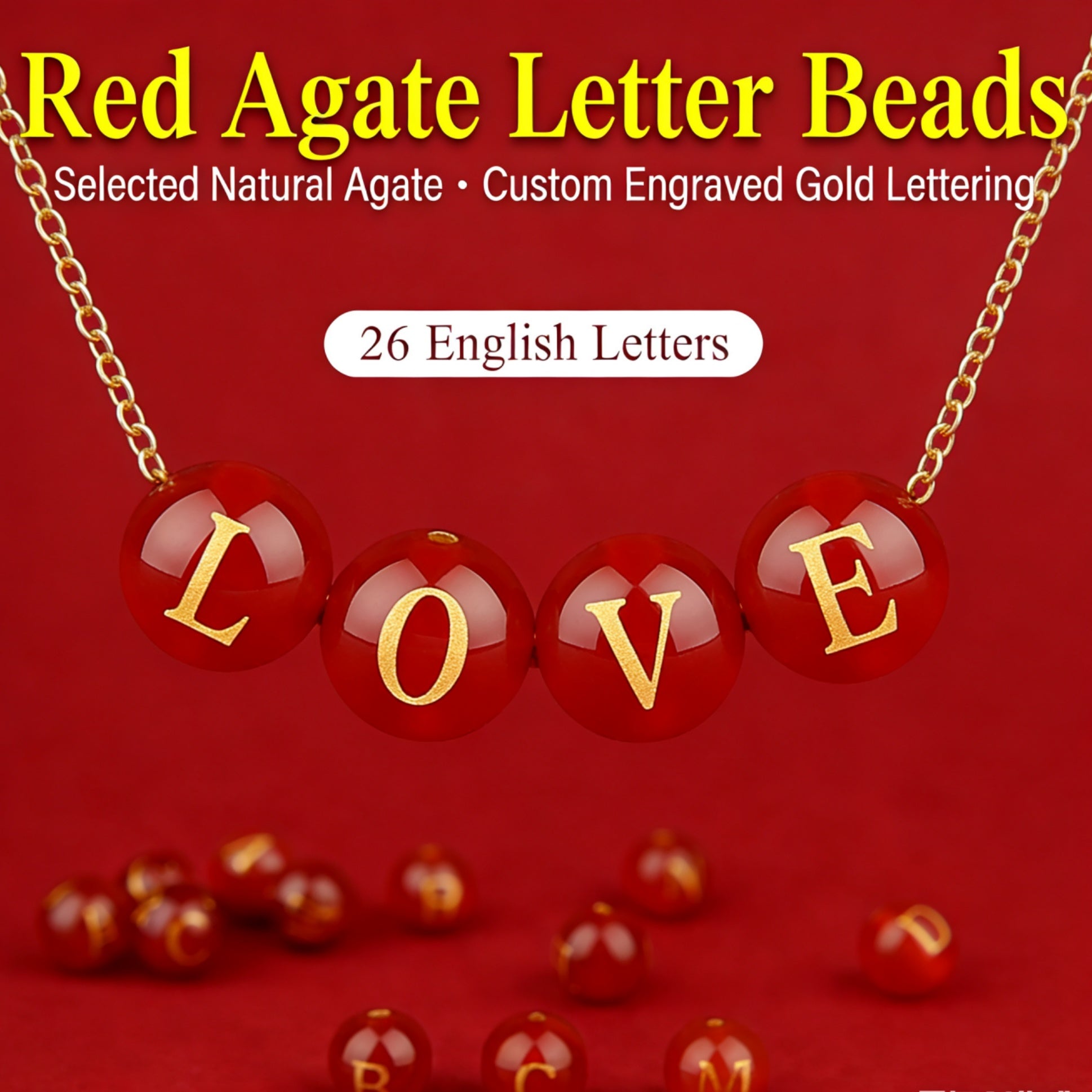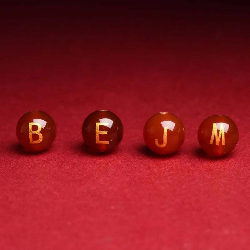 Natural Red Agate Beads - 26 Alphabet Loose Beads for Engraving Customization DIY