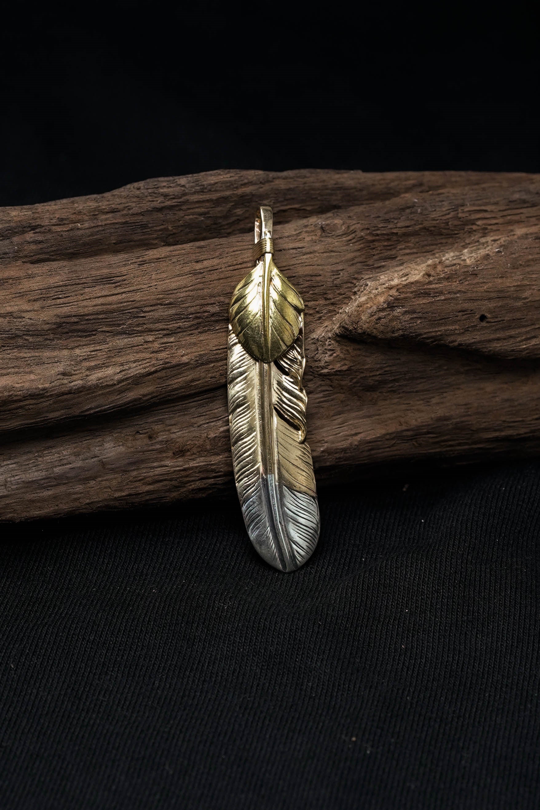 Left Feather Retro 925 Silver Goro Takahashi Pendant with Brass